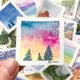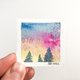 原始水彩艺术天空 - 纸上迷你绘画 - 微型绘画 - 小墙壁艺术 2 x 2 英寸