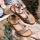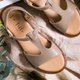 ✦ 鞋片T字剪裁修饰脚板,顺应脚型的剪裁让脚显得更为修长美型,微微露出脚部肌肤,迷人性感,替炎炎夏日添加一股清凉。