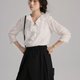 【灵动荷叶边V领设计呼应蕾丝拼接装饰,勾勒肢体柔美线条】