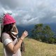 - 材料包含2粒线材 需要自己动手编织,非成品 尖头个性精灵毛线帽 特殊造型泡泡粗细线材手作编织 100%羊毛 男生女士都适合戴