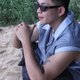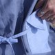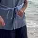 清新浅蓝条纹 透明花扣 无袖衬衫 棉质