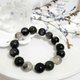 银曜石,又称银曜石或银沙黑曜石,是一种黑曜石,其表面具有银色猫眼光泽,被认为具有多种功效,包括辟邪化煞、招财、增强自信和果断力、以及改善睡眠和舒缓压力等。