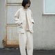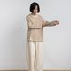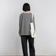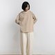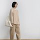 直线落肩,宽松直筒版型,袖口收拢,领口拼接米色细螺纹,