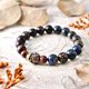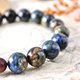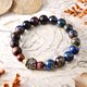 以深邃蓝铜矿为主石,宛如浩瀚星河,映照出宇宙的神秘与灵性。龙纹的脉络象征力量与智慧,带来坚定与守护。黑金锂云母则以其低调奢华的光泽,平衡能量、安定心神,助人远离杂念,保持专注。中央鎏银貔貅点睛,象征纳财聚福、辟邪镇宅,寓意守护主人的正财与偏财。整体配色深沉而不失灵动,展现刚柔并济之美。佩戴此串手链,如同掌握一眼星辰,既能守护心灵,又能引领财运,是护身与开运的吉祥之选。