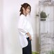 素色上衣面料轻薄舒适,七分袖长适合春夏穿着,领口扭结设计,下摆前短后长,款式简约,气质满分。