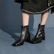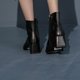 - 换季来双俐落时尚的高跟短靴 舒服的牛皮上脚立即感受的到 5厘米微跟高搭配起来格外没有负担 靴身拉链的拉柄金属有层细致皮块包覆