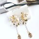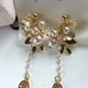 采用淡水珍珠镶造而成,哑金色花朵为14k材质,造工精致不易变色,搭配垂落叶子和珍珠,在圆润柔和之间,不失俐落层次感,像是女生温柔又坚定的特质。