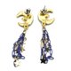 ネックレスで使用しているチェーンを垂らしてブルーが映えるデザインに。