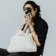 内部空间宽敞,可容纳笔记型电脑、充电线、笔记本、书籍等各式物品。无论是肩背或手提,都能展现独特风格。
