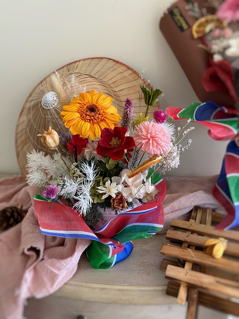 以 “台湾感性” 为题的花艺课程里,我们用接近台湾元素的永生花与干燥花编织回忆,把土地的色彩与人情味,转化为手中一束能触动心弦的作品,重现复古氛围。