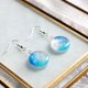 以两种蓝色点缀光泽感的白色,并撒上银色亮粉,是一款清爽洁净的耳环。