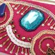 キルト芯を貼ったガーゼ地に糸やビーズで細かな刺繍を施しました。