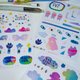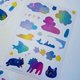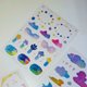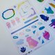 利用我们的色纸的图样剪出形状后,贴到黑卡上扫描、整理排版,最终诞生了三款可书写的和纸手帐贴纸: