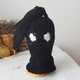 - Unique and psycho collection of crocheted women's and men's cotton yarn balaclavas with bunny ears on sale. Black color number 53 according to the color chart in the last image. Two eye holes , embellished with sequins and floral pattern. Personalized and expertly handcrafted to keep each piece unique. Want a hat in a different color or style, email me