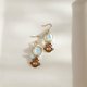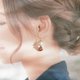 附有石头的可爱土星吊饰,稍大的圆环,可爱的蓝水滴形捷克珠,形状可爱,看起来像大理石,还有两种小玻璃珠混合在一起的时尚耳针/耳夹☆。