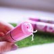 2、顺时钟“旋转”瓶身的白色/粉红色螺旋瓶盖。(如旋转口红)