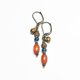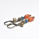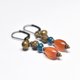 这款耳环串联了苗族古董红玉髓、靛蓝色珠饰、颗粒黄铜和民族铃铛。
