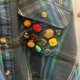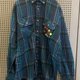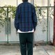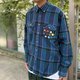 这是一件在格纹衬衫胸前口袋处装饰了复古钮扣的重制衬衫。