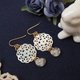 かわいらしいレースモチーフに繊細にカットされた白蝶貝とアメリカ製のランプワークビーズ(とんぼ玉)を合わせたピアスです^^