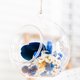 - 圆形玻璃球视觉效果最圆满,蓝色干燥花给人们沈稳信任的疗愈感;在空间的妆点上也能出彩点缀,给生活加分的微景作品。