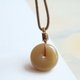 天然和田玉平安扣吊坠,天然糖色,料子凝实,脂份足。平安扣寓意圆圆满满,平平安安,搭配精美手工绳,坠子尺寸约22.3×8.4mm
