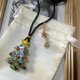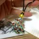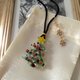 ガラスで出来たクリスマスツリーペンダント ペンダントトップの近くに雪の結晶をイメージした飾りもついております 紐は頭からかぶり、黒に白のドットの手作りビーズで長さを調節できます
