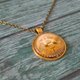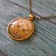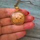 The homemade pendant is made of a glass cabochon in a golden-colored frame with a high-quality image.