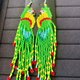 这组以串珠制成的鹦鹉造型耳环,以鲜艳的绿、蓝、黄、红为主色,象征热带生命力与自由灵魂。每一颗珠子皆手工串成,展现细腻工艺与活泼律动。设计灵感来自自然中最具色彩张力的鸟类——鹦鹉,寓意“勇敢表达自我、绽放真实色彩”。透过传统串珠技法结合现代时尚语汇,使文化工艺转化为可佩戴的艺术,传递自然、快乐与自信的精神。