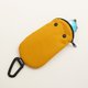 外側は耐久性の高いポリエステルコーデュラ、口のなかはオレンジ色のナイロン。中綿入りで少しクッション性があります。(落下時に中身を保護するほどの保護力はありません。)