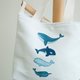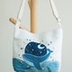 原创双面设计布袋-鲸鱼(一袋两用) *尺寸约:22x22cmx6cm *可调节带子长度,适合大人小朋友 *可手提 可斜孭 *布料亲肤 *顺丰到付