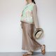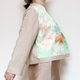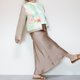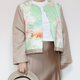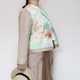 前襟部分采用复古和服布料,以淡雅的绿色为基调,盛开的花卉图案散发出清新脱俗的气质。