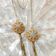 ✨ 以柔雾金映衬天然依索比亚蛋白石的梦幻光晕,仿佛穿越时光,回到爱在西元前的浪漫年代——蛋白石在光影间闪烁如晨曦般的变彩,象征历久弥新的爱与命运的相遇。圆润珍珠如繁星围绕,散发柔和光泽;金色流苏随步轻舞,勾勒出法式女人低语般的优雅。