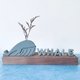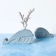 身为鲸鱼控的设计师,以水泥做出鲸鱼的身体,搭配迷你玻璃试管,并利用干燥花卡斯比亚自然的线条,模拟出水花。