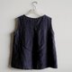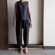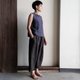 领口随着摆动微开小V,利用褶缝方式后片随着摆动倒V开合,两者相呼应,复古典雅的灰紫亚麻,让简单线条优雅自在。
