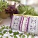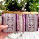 严选一枚一枚精美可爱的印度刺绣缎带与散发美丽光泽的缎带,并将它们巧妙地组合アレンジ,最终制成一片独特的布料,作为长夹表面的设计。
