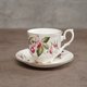 带有精致的吊钟花与手绘描金设计的细骨瓷杯组由英国Duchess制造,吊钟花的花语是幸福、光明、活力、圆满、富贵、诚实和憨厚,吊钟花朵就像铃铛一样晶莹醒目,花期正值元旦、春节期间,长期以来被作为吉祥的象征。