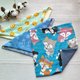 领巾围兜3件组弥月礼盒 三角领巾可当手帕,双面使用 材质:正面双层纱+夹层双层纱布+背面随机搭配双层纱布 可加购绣字(请先询问在下单) 可挑选图案(请私讯询问) 送礼可代写小卡