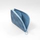 整个短夹共有4张信用卡夹、一个零钱袋及零钱袋左右两个空间可放对折纸钞、发票等小物。包里为蓝灰色布料。