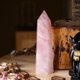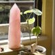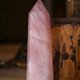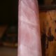 相片是在日间太阳光照射下和晚间的室内灯光下拍摄的,展现着这粉晶柱的不同美态。 真品是非常实在的粉红色还带着点紫调,相比之下,晚间拍摄的是更贴近她的真实颜色。