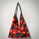 日本印花布及仿皮防水材质,双面不同效果的三角形肩背包,造型时尚具有设计感!