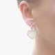 换个风格,选择 Julia 耳环——流线感十足的铑镀纯银圈环,搭配可拆式心形吊饰,镶嵌着柔光莹润的珍珠母。这样的设计别具意义:珍珠母象征直觉的智慧与情感的守护,守护着内心最柔软的情愫,让佩戴成为一种深刻而持久的象征。