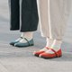 恰到好处的圆头使鞋子整体变得温和,给人一种优雅的印象。鞋面部分为具有休闲感的棉质布料,但是做成了成熟气氛的鞋子。即使是彩色鞋子也不会显得幼稚,容易搭配出大人感也很有魅力。