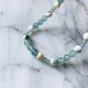 由危地马拉产具有冰透感的蓝绿色圆珠翡翠、深海蓝色小粒翡翠,以及珍稀的大溪地夜光贝圆珠组合而成。不同材质与色彩相互辉映,呈现出耐人寻味、百看不厌的独特魅力。