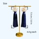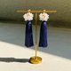 以细致的白色小花朵串珠呈现,并与深邃的靛蓝色流苏相互搭配。