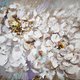 柔和的珍珠色调——奶油白、温暖米色、淡淡粉色以及细腻的综合色彩过渡——营造出优雅而精致的氛围。画面中点缀有金箔碎片,在光线下呈现出低调而高级的光泽,为作品增添一丝奢华感。