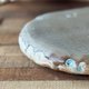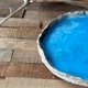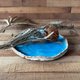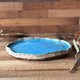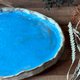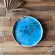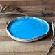 独特风格的陶盘,以无规则造型、蓝色盘面,经过高温烧制,可盛食物,亦可为家居收纳盘或装饰。