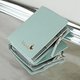 “短款钱包,真皮,Pocket Book 款,蓝,真皮、Saffiano、Nappa 材质。”