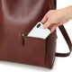 以深浅层次迷人的复古刷色皮革作为主角,透过包底的三角形结构与上方的打褶设计,勾勒出自然流畅的轮廓。上方刻意收薄的设计,即使放入物品也不易鼓起,能维持俐落线条,让背影更显优雅。