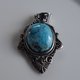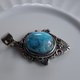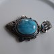 1. 当绿松石内所含的铁离子越多,则颜色越绿,反之,若无铁离子,则呈富丽的天蓝色,本件老绿松石有是属天蓝色(市场较偏喜爱)