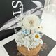 【花材】永生蒲公英、绣球花、洋甘菊、迷你满天星、小星花、小桦木叶、风铃草、钮扣菊、蓬莱松